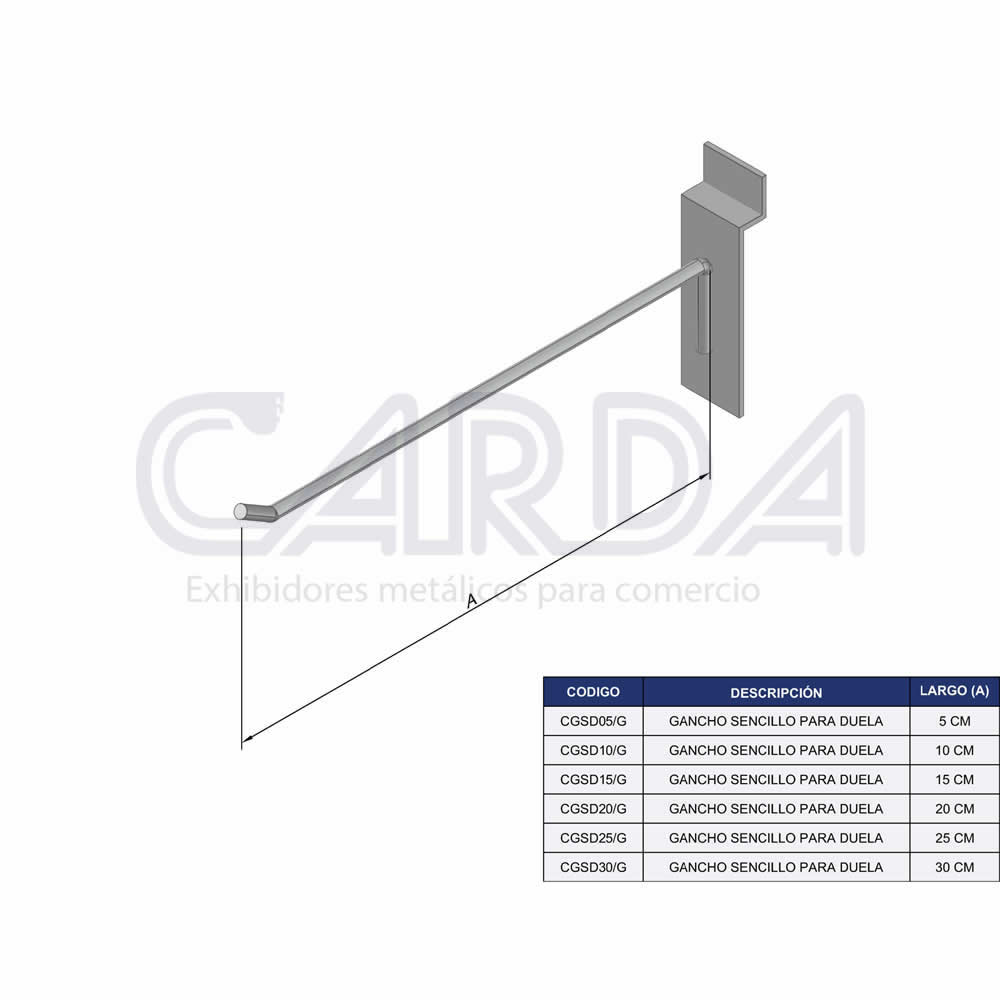Gancho sencillo estructura en alambre especial para panel ranurado y malla tipo duela