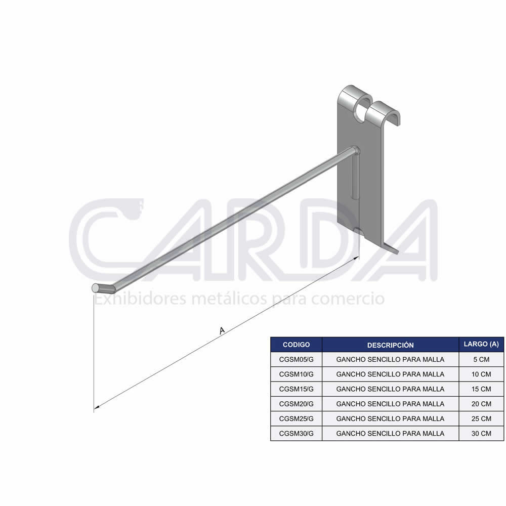 Gancho sencillo estructura en alambre especial para malla acabado galvanizado y epoxico