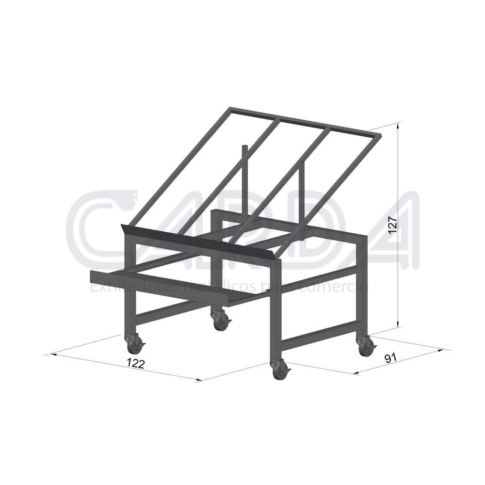 Mesa frutera metalica con 4 ruedas acabado en pintura epoxica