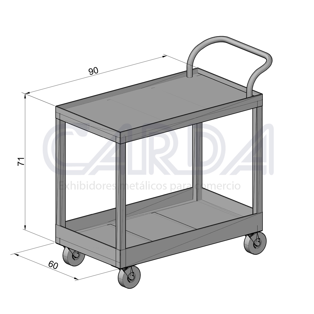 Carrito de 2 niveles con 4 ruedas acado en pintura epoxica