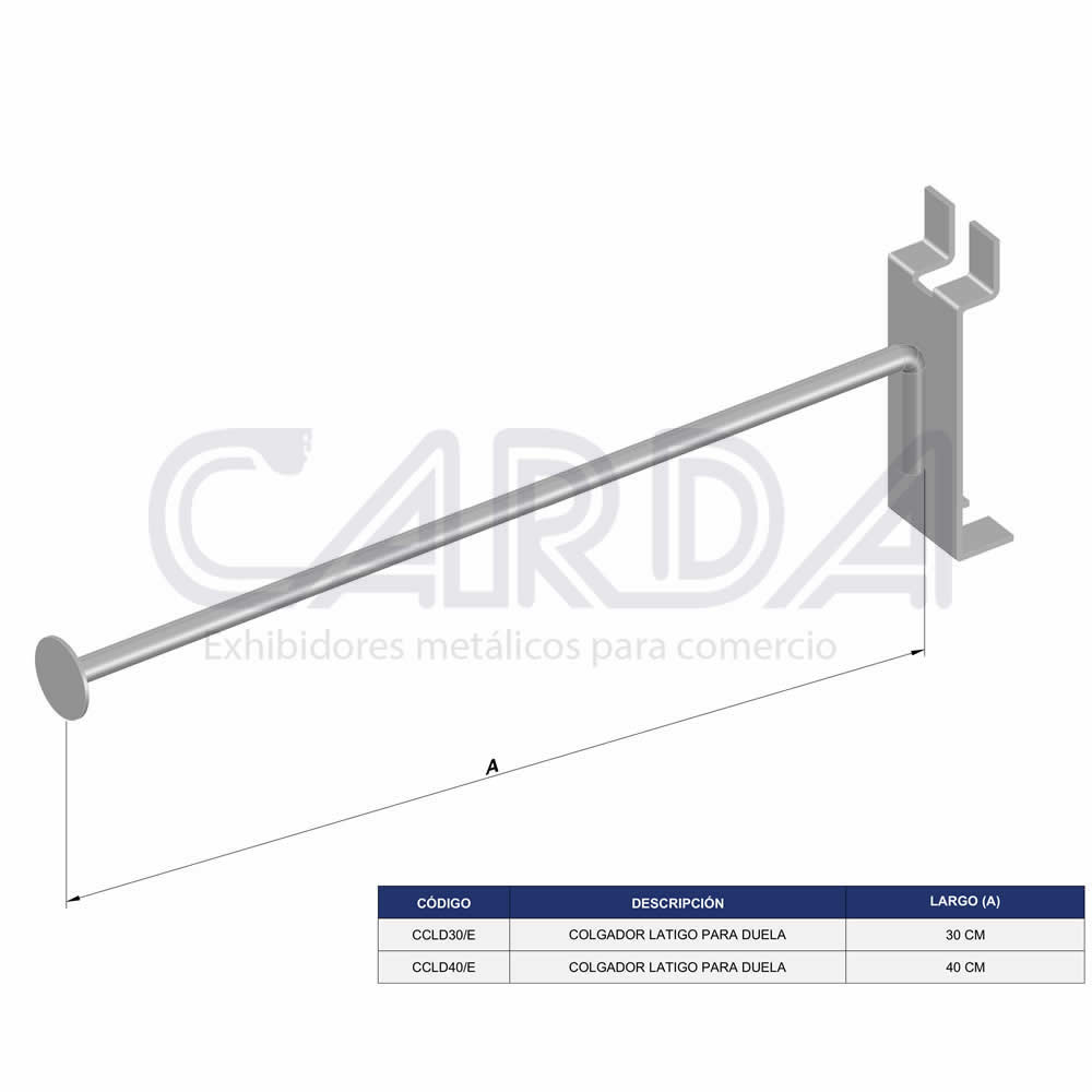 Colgador latigo para malla tipo duela fabricado en alambre acabado epoxico