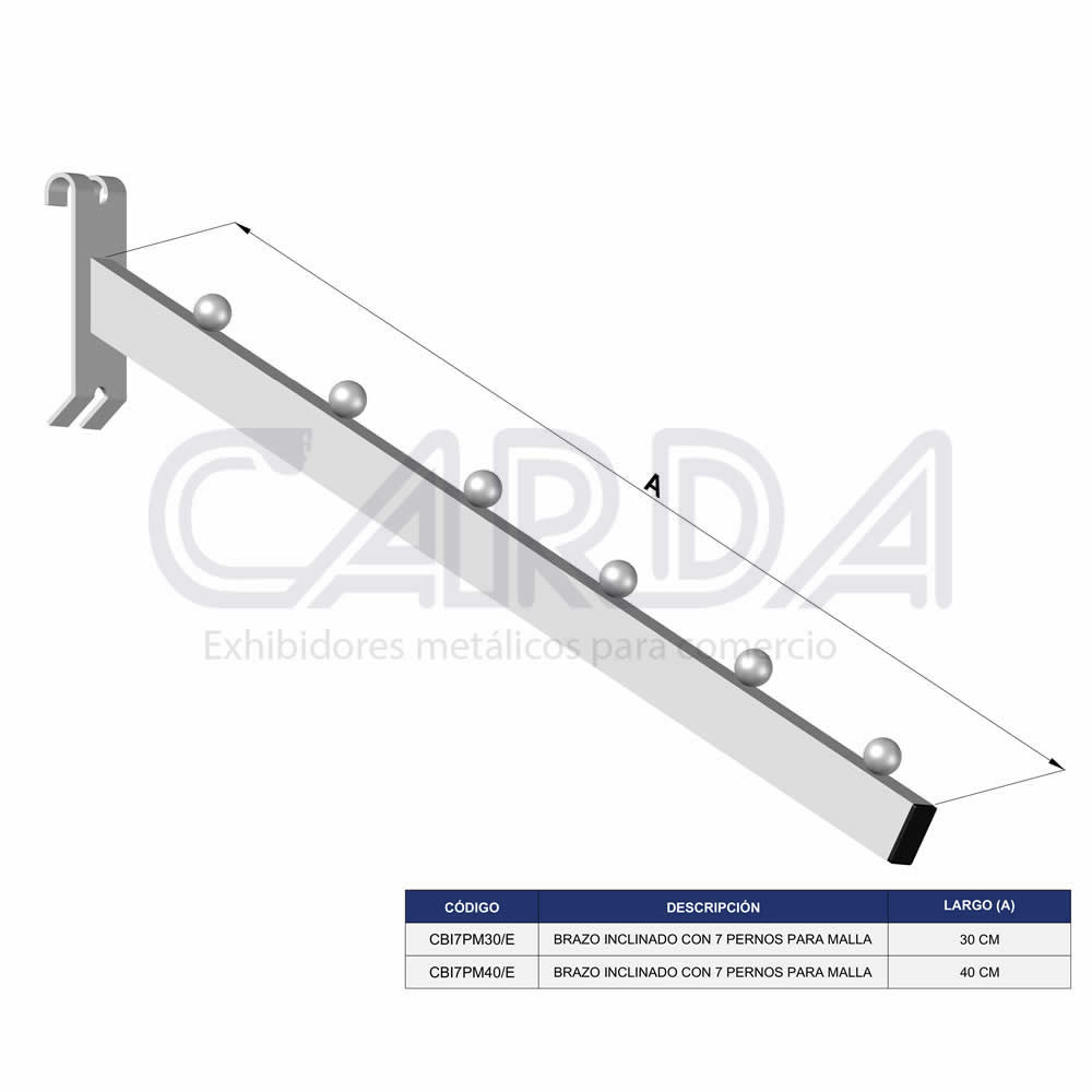 Brazo inclinado con 7 pernos especial para malla acabado epoxico