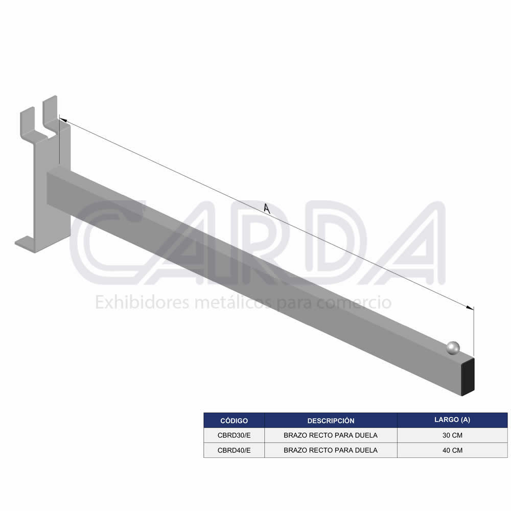 Brazo recto metalico fabricado en ptr para malla tipo duela acabado epoxico