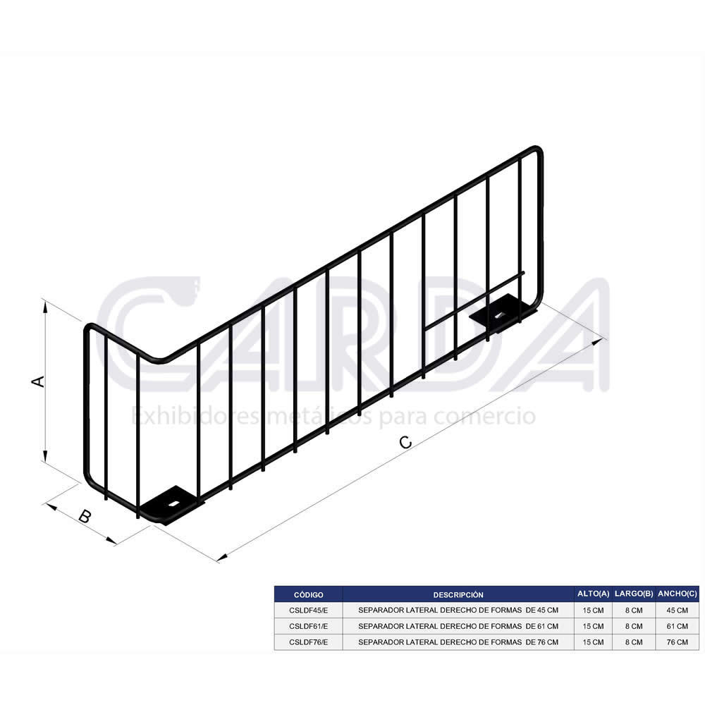Separador de formas en alambre lateral derecho para entrepaño acabado en pintura epoxica